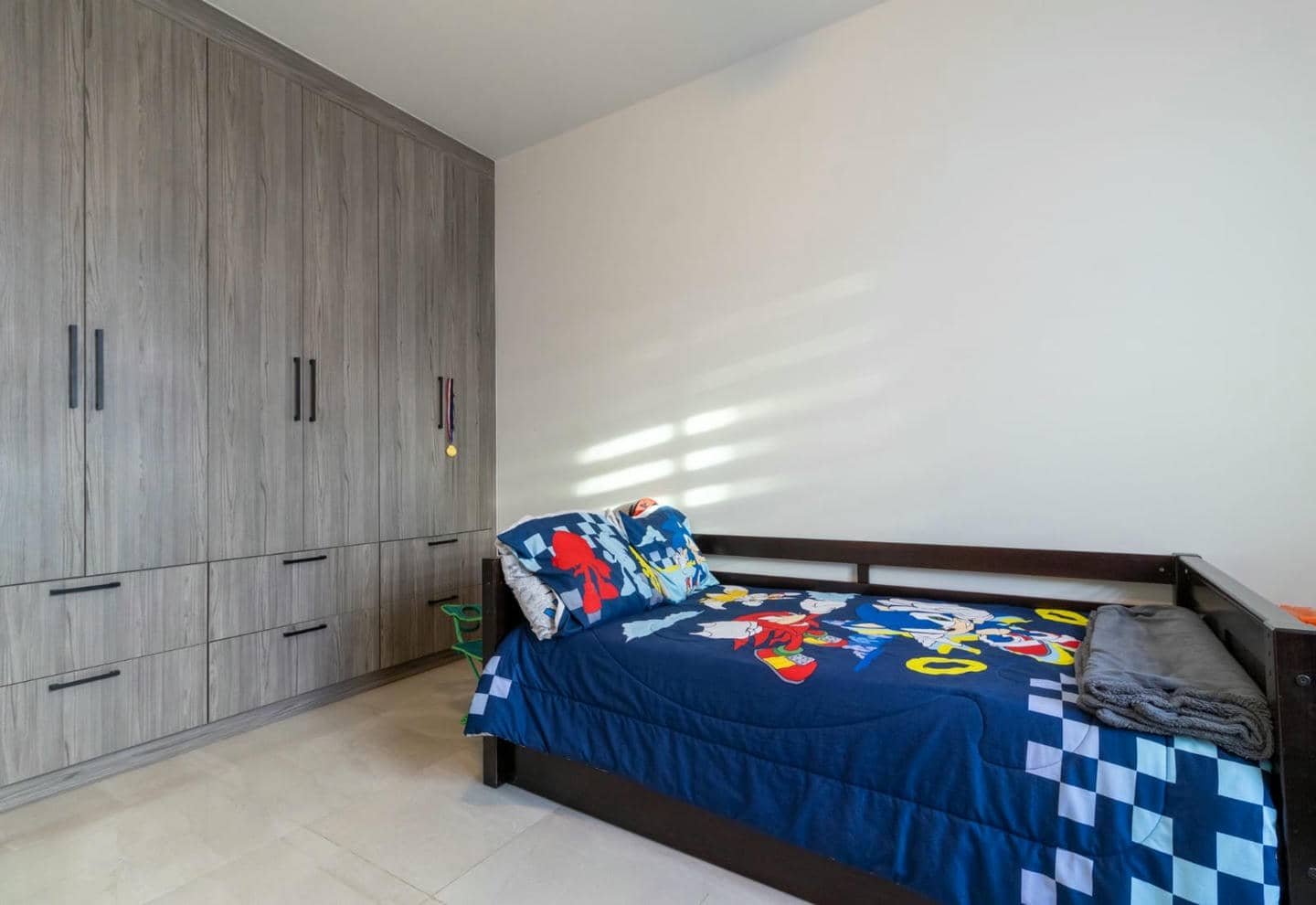 En la planta alta encontrarás una estancia familiar muy versátil: puede funcionar como sala de TV, área de juegos, estudio o home office. Se distribuyen tres recámaras, destacando la recámara principal por su baño privado y walk-in closet, ofreciendo privacidad y comodidad. Las recámaras secundarias se adaptan muy bien a diferentes necesidades, ya sea para familia, visitas u oficina. En este nivel también hay un baño completo que da servicio a la estancia y recámaras secundarias.