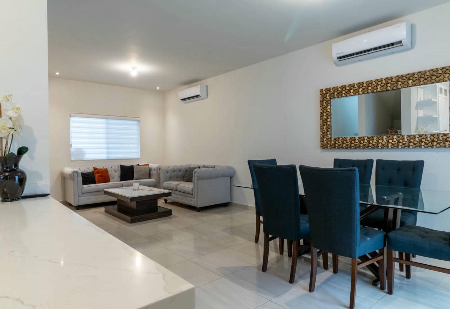 En cuanto a equipamiento, esta casa ya incluye 6 minisplit inverter, lo cual es una ventaja importante en Hermosillo por confort y eficiencia energética. Además, cuenta con cisterna e hidroneumático, elementos clave para mantener presión y continuidad en el suministro de agua. También incluye persianas, boiler y estufa/campana, lo que reduce inversión inicial y acelera tu mudanza. La propiedad se encuentra en excelente estado de conservación y con orientación oriente, lo que favorece una buena iluminación natural en distintos momentos del día.