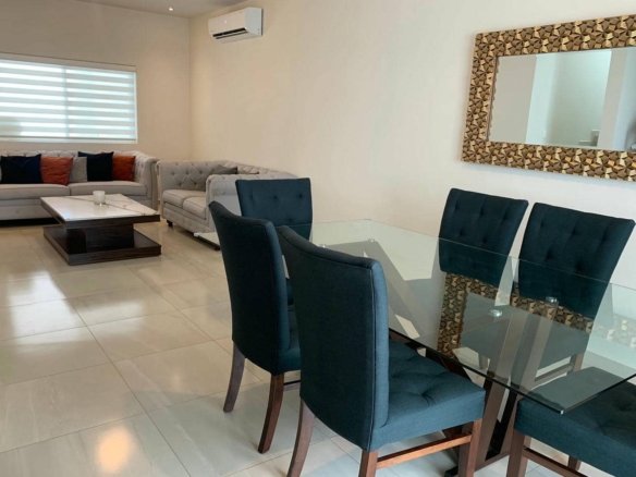 Esta propiedad corresponde al Modelo Alcázar y se encuentra equipada y lista para habitar. Cuenta con 183 m² de terreno y 208 m² de construcción, distribuidos en dos plantas con una propuesta funcional que aprovecha bien cada espacio. En planta baja se ubica el área social con sala y comedor, con una distribución cómoda para reuniones y convivencia diaria. La cocina integral se integra de manera natural, permitiendo cocinar y convivir al mismo tiempo. Además, incluye lavandería interior, un detalle que suma practicidad y orden en la rutina.