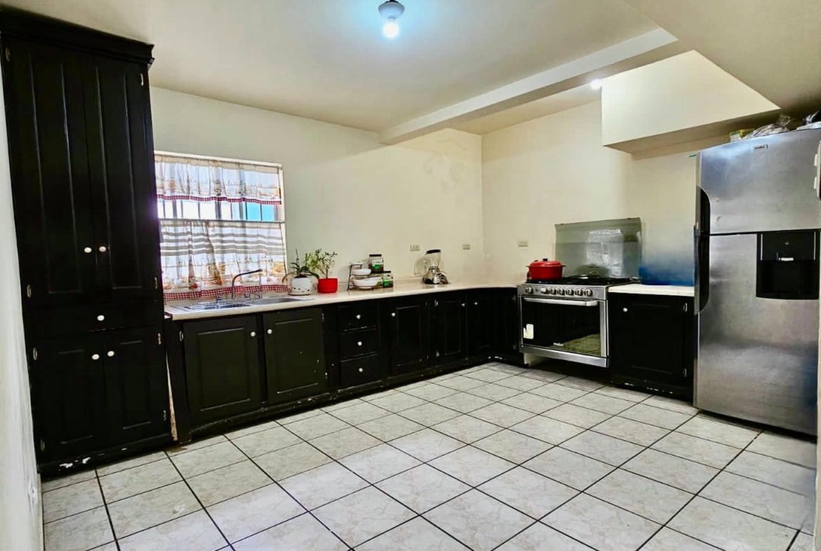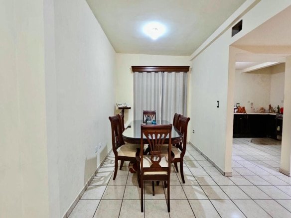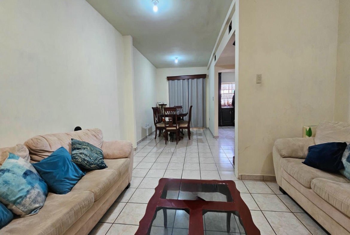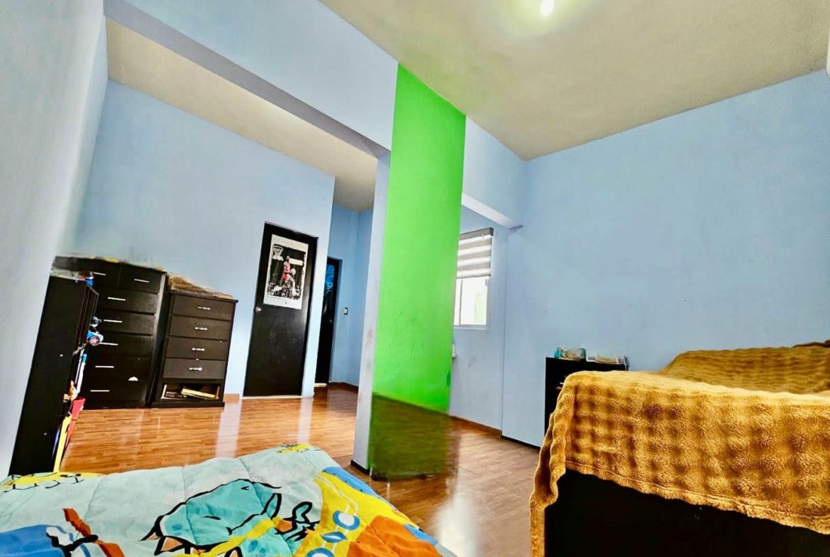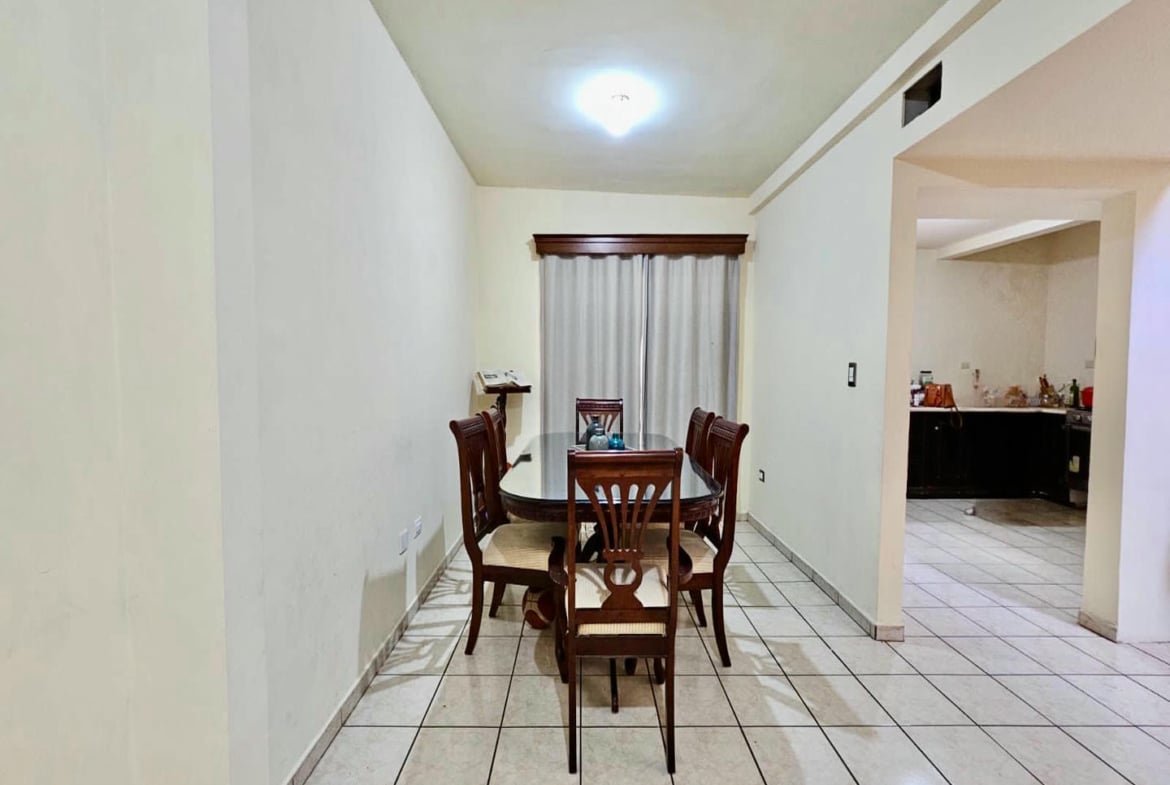 La casa se desarrolla en dos plantas, con una distribución funcional que separa de manera eficiente las áreas sociales de las áreas privadas. En planta baja cuenta con recibidor, sala y comedor con buena iluminación natural, así como una cocina equipada con cocina integral, diseñada para un uso práctico y cotidiano. En el exterior dispone de cochera con capacidad para dos o tres autos, área de jardín y patio amplio, espacios que permiten disfrutar actividades familiares, reuniones sociales o incluso futuras adecuaciones.