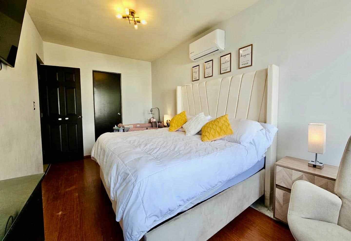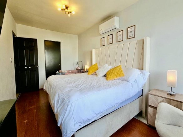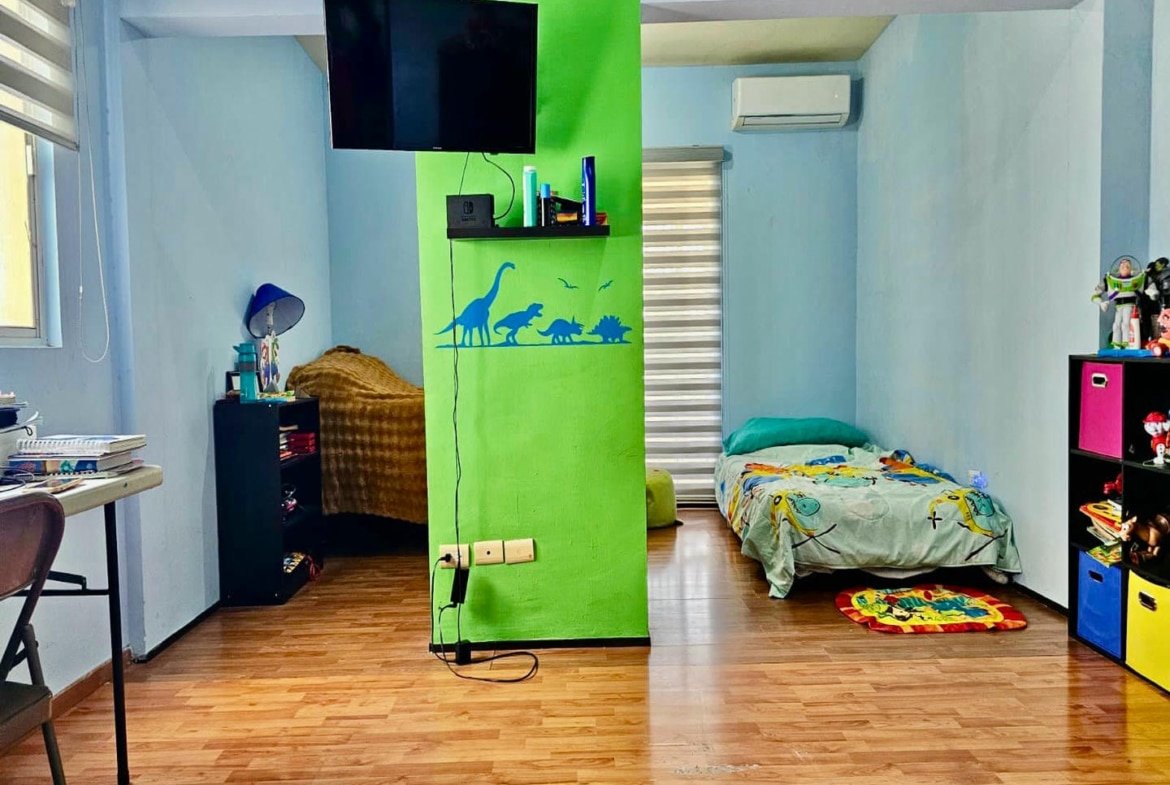 En la planta alta se localiza una estancia ideal como sala de televisión, área de estudio u oficina en casa. La zona privada está conformada por tres recámaras; dos de ellas cuentan con clóset, vestidor y acceso a terraza o balcón, lo que aporta ventilación cruzada, iluminación natural y una sensación de amplitud en cada espacio.