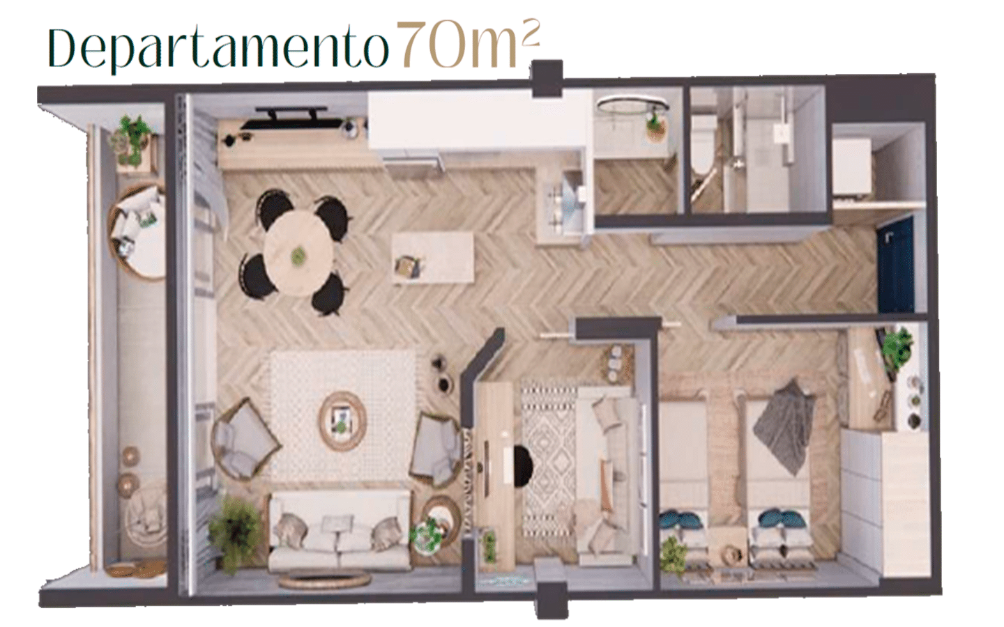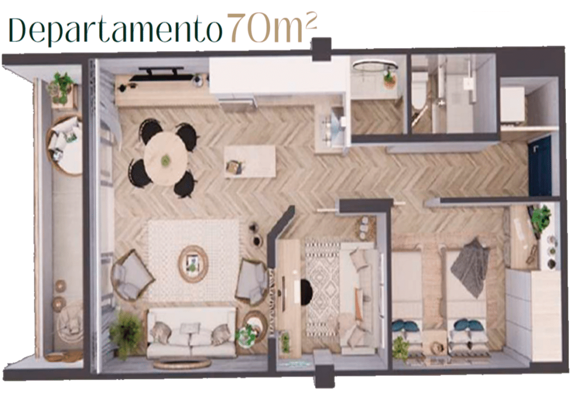 Dentro de estos departamentos en venta en Bahía de Kino, el modelo de 70 m² es ideal si tu objetivo es maximizar ocupación con un ticket de entrada más accesible y una operación súper eficiente para estancias cortas. Su distribución está pensada para que el huésped “llegue y se instale” sin perder metros en pasillos: área social integrada (sala–comedor–cocina), terraza/balcón para disfrutar la brisa de Kino, 2 recámaras y 1 baño completo, más espacio funcional para guardado y logística de renta. Es el tipo de unidad que se mueve muy bien en plataformas porque combina lo que más busca el huésped: comodidad, practicidad y sensación de “vacaciones” desde el primer día.