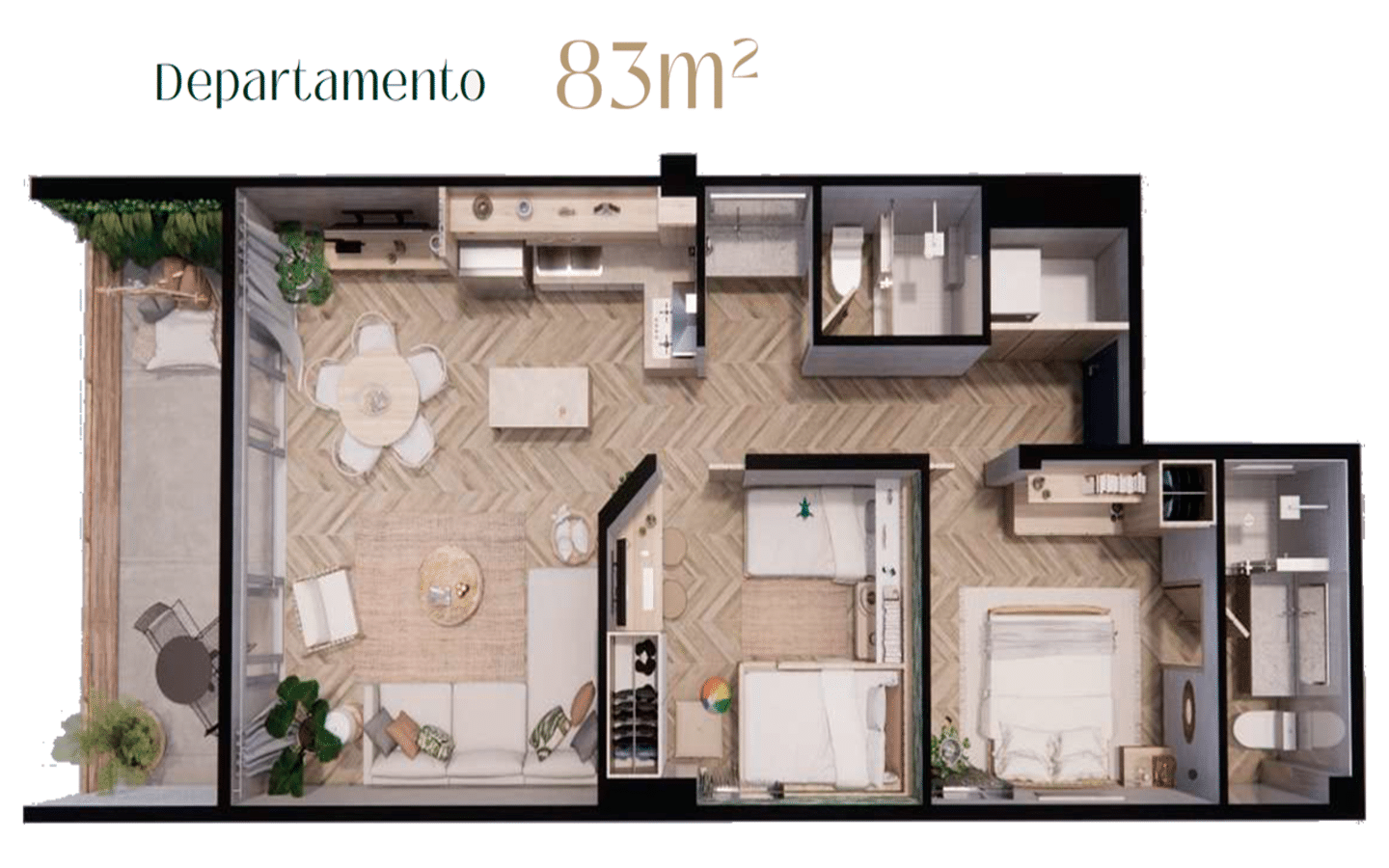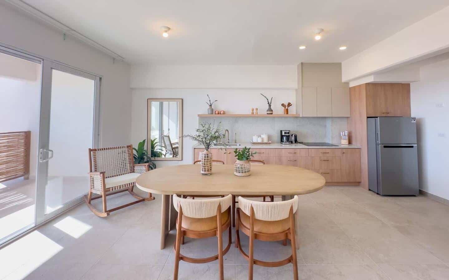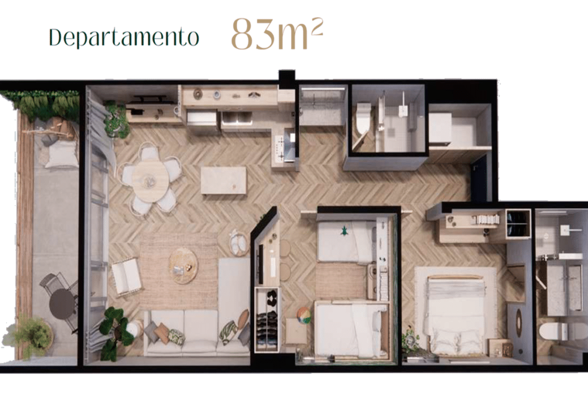 El Departamento de 83 m²: tiene un formato ideal para familias, parejas o grupos pequeños que quieren comodidad sin complicaciones. Incluye 2 recámaras, 1 baño completo (con accesorios de alta gama), cocina y área para sala/estancia, además de balcón y espacio para centro de lavado (lavadora y secadora). Todo pensado para estancias cortas y medias, donde la gente valora privacidad, funcionalidad y un espacio agradable para descansar después de la playa.
