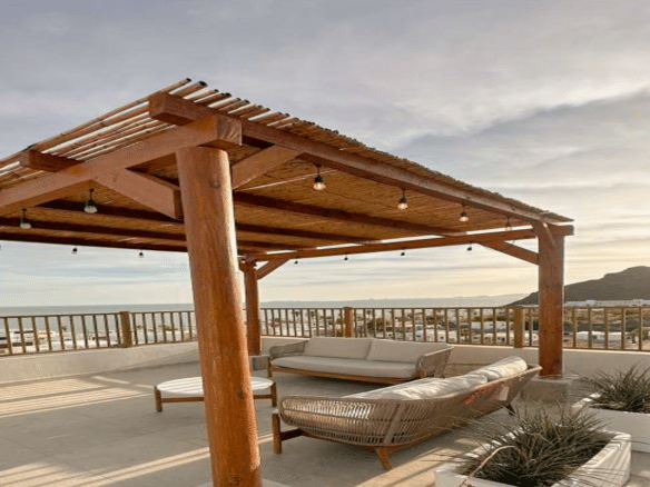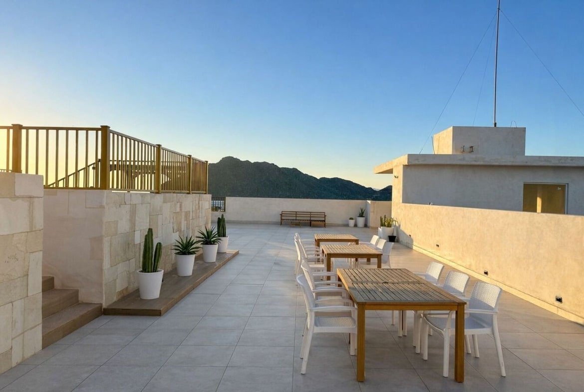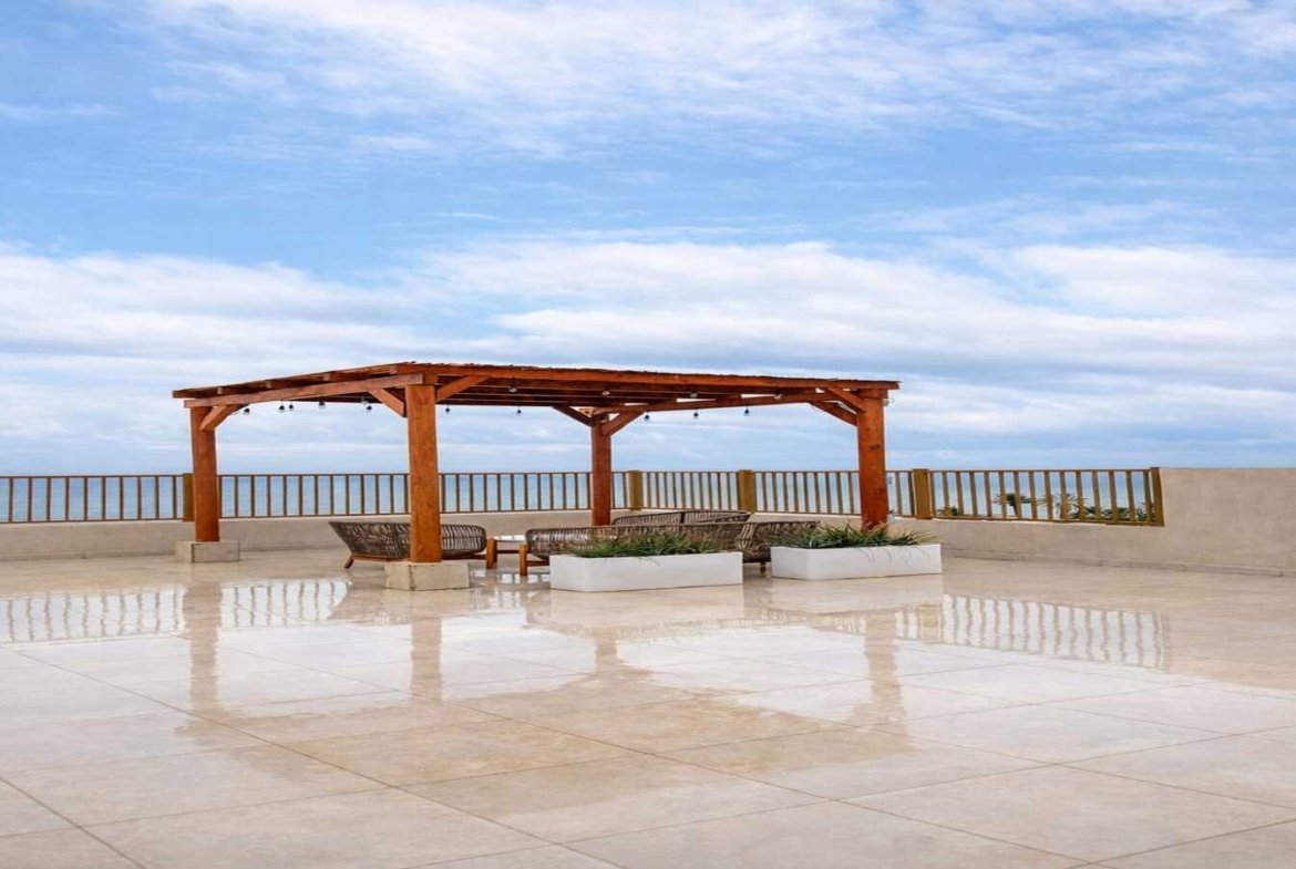 Lo que diferencia a Departamentos en HAX Bahía de Kino no es solo el “departamento bonito”, sino el conjunto completo para que el huésped diga: “aquí me quedo”. En especial, el rooftop con alberca panorámica y áreas sociales, con salas lounge, camastros, firepits, regaderas y baños: eso se traduce en mejores fotos, mejores reseñas y tarifas.